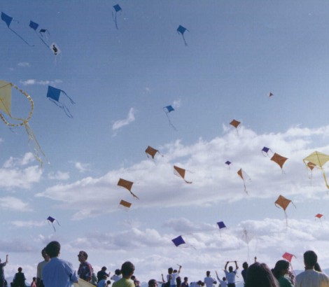 origine nella rivalità fra le bande di ragazzi urbinati dei diversi rioni. In quei tempi difficili, l’aquilone e pochissimi altri giochi, rappresentavano il vero istinto di libertà e di rinascita e tre urbinati decisero di coinvolgere le bande di ragazzi in una competizione con gli aquiloni giocando a chi riusciva a mandarlo più in alto. Da allora ed in maniera sempre più coinvolgente, la Festa unisce gli urbinati che, con grande spirito di contrada, si contendono ogni anno, il Trofeo Città di Urbino.
